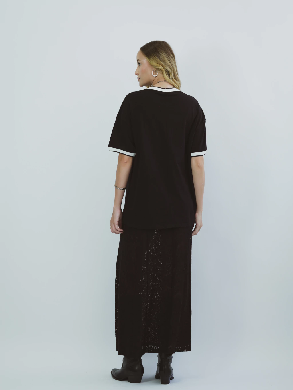 Ideal para produções mais elaboradas ou casuais com toque fashion, essa saia pode ser combinada com camisetas amplas, croppeds estruturados ou camisas sofisticadas. O contraste entre o acabamento delicado da renda e peças mais minimalistas cria looks modernos e autênticos, perfeitos para transitar do dia para a noite com facilidade.